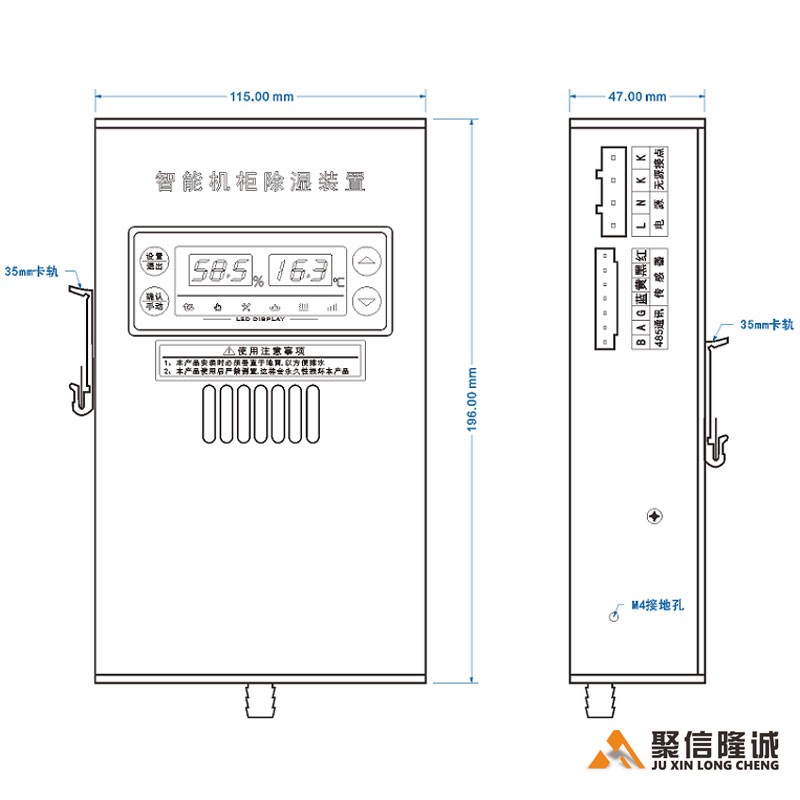 10、型號帶“T”的具有加熱功能,當檢測到箱體環(huán)境溫度低時,除濕裝置內部的風機和外部加熱器啟動工作。